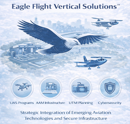 With over 30+ years experience in the national and international aviation arena, working with the FAA, EASA, CAAS, and other international aviation authorities, Eagle Flight Vertical SolutionsTM is the leader in UAS and AAM solutions, and provides expert support for new and current UAS and AAM maintenance program development, including UAS/AAM repair facility design and implementation, UAS/AAM Operations at Towered Airports, UAS/AAM Regulatory & Compliance counsel and support, UAS/AAM Battery Integration and Maintenance Solutions, UAS/AAM Safety Solutions, AAM aircraft certifications, and Vertiport infrastructure assessment to support AAM operations.
